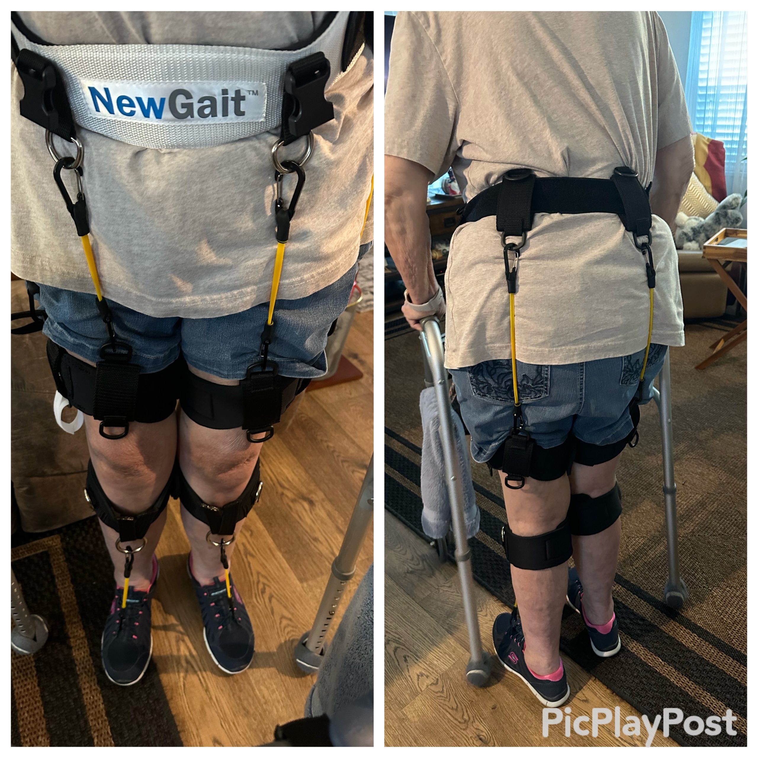 The New Gait is a wearable orthotic device for people with mobility impairments. Strategically placed elastic bands provide mechanical refinements, postural corrections and inhibition or facilitation depending on patients needs.